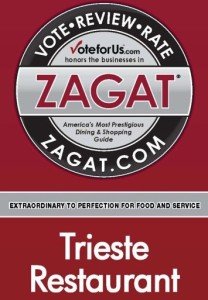 Trieste Italian Restaurant was the 2013 recipient of the “Zagat” award!